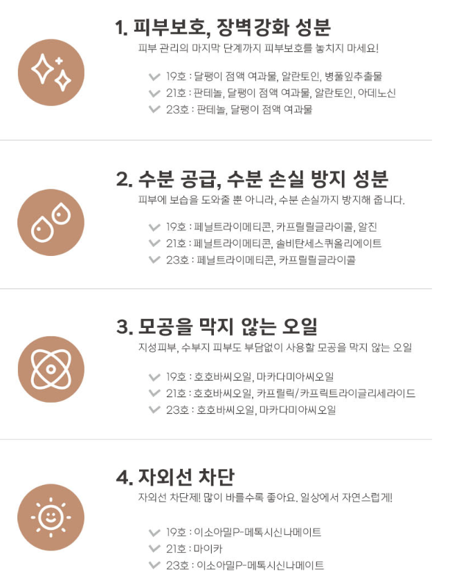 | 히알루론산 | 피부 보습 & 촉촉한 마무리 |