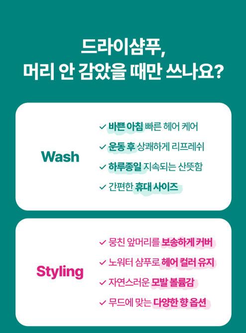- 아침에 시간이 없어 머리 감을 여유가 없을 때