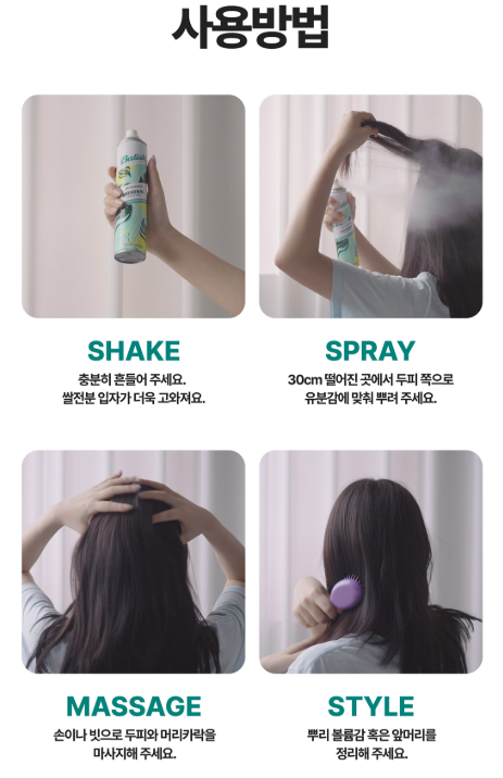 하루 한 번 쓱 ~바디스트 드라이샴푸로 기름짐은 사라지고 자신감은 올라가요.